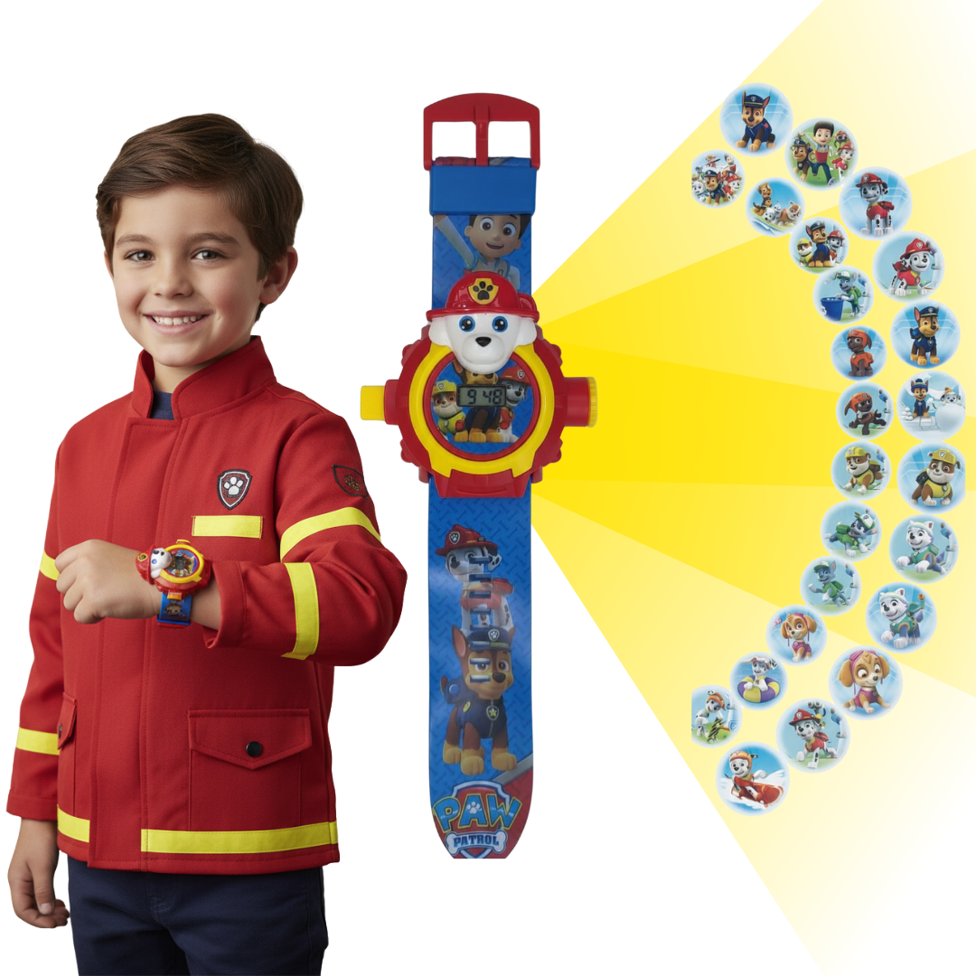 Diversão e aventura sempre na hora certa! O **Relógio Infantil Digital da Patrulha Canina** é o acessório perfeito para os meninos que adoram os heróis de quatro patas mais famosos da TV. Além de marcar as horas de forma prática, o relógio conta com um projetor incrível que exibe **24 imagens diferentes da Patrulha Canina** para brincar e colecionar.